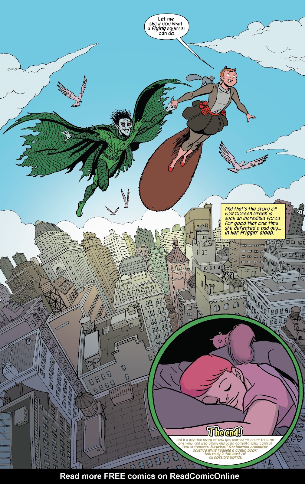 But the wise Squirrel informed Doreen that she's already proven she's someone who helps people too, and hit her with the truth bomb everyone needs to hear at least once, you have your whole life ahead of you, Why are you Already Deciding what you cannot do? Doreen isn’t like other superheroes. She doesn’t have some tragic backstory where her parents died or she was persecuted or something to teach her responsibility. Her childhood was totally normal other than the fact she had goofy Squirrel powers that made her feel self conscious and struggle making friends. But all it took was this one Squirrel believing in her to convince her she can be so much more than she once thought.